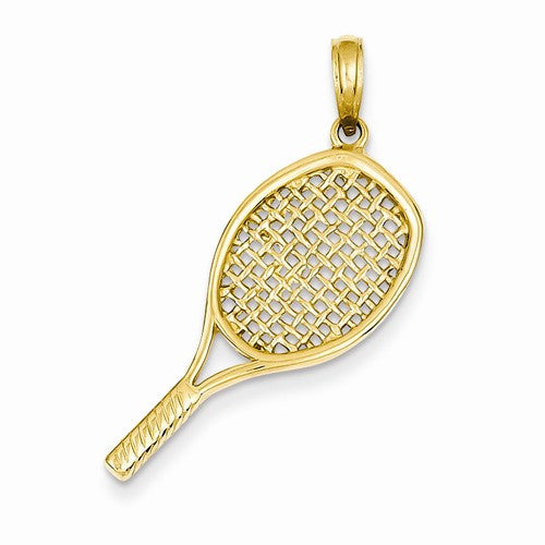 14k Gold Solid Polished 3-D Tennis Racquet Pendant