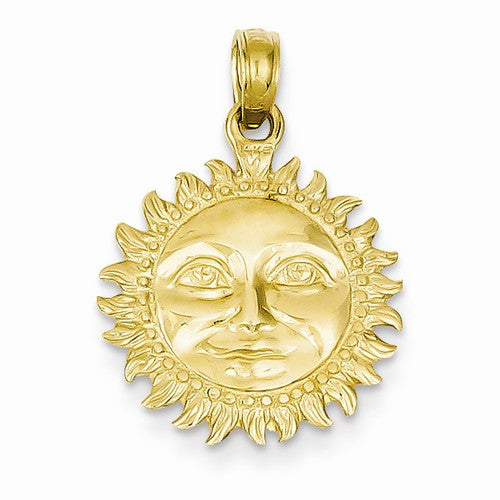 14k Gold Solid Polished 3-Dimensional Sun Pendant