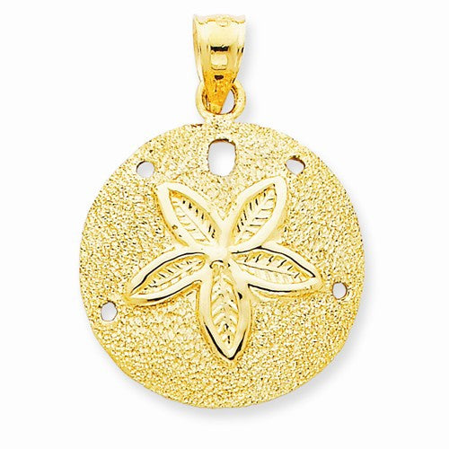 14k Gold Solid Polished Laser-Cut Sand Dollar pendant