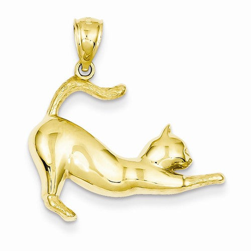 14k Gold Stretching Cat Pendant