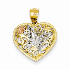 14k Gold Tri color Butterfly Heart Pendant