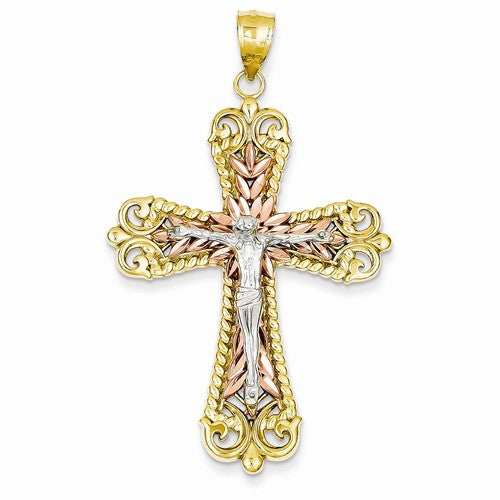14k Gold Tri-color Crucifix Cross Pendant