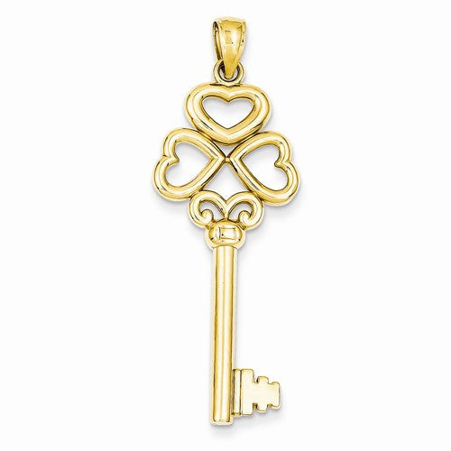 14k Gold Triple Heart Key with Key to my Heart Pendant, Pendants for Necklace