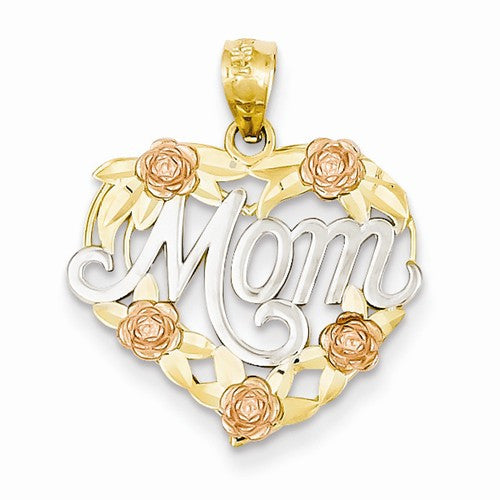 14k Gold Two-tone and Rhodium Mom Heart pendant, Lovely Pendants for Necklace