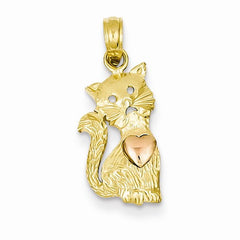 14k Gold Two-tone Cat with Heart Pendant, Pendants for Necklace