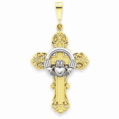 14k Gold Two-tone Claddagh Cross Pendant