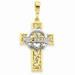 14k Gold Two-tone Claddagh Cross pendant, Stylish Pendants for Necklace