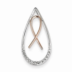 14k Gold Two-tone Diamond Awareness Ribbon in Teardrop Slide Pendant, Quality AA (G-H Color, SI1-SI2 Clarity)