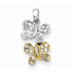14k Gold Two-tone Diamond Butterfly Pendant, Quality AA (G-H Color, SI1-SI2 Clarity)
