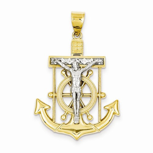 14k Gold Two-tone Diamond-cut Mariner's Cross pendant