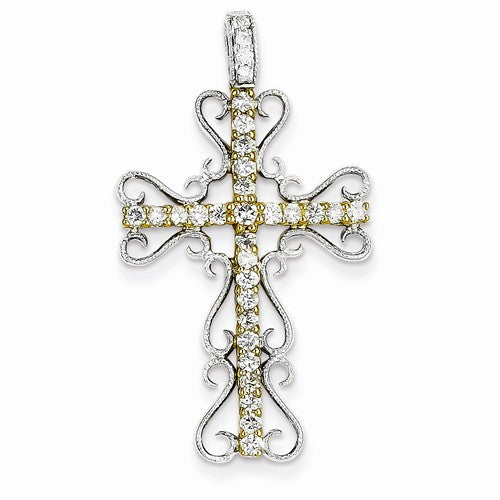 14k Gold Two-tone Diamond Filigree Cross Pendant