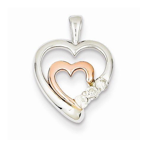 14k Gold Two-tone Diamond Heart pendant, Quality AA (G-H Color, SI1-SI2 Clarity, 0.1 cttw), Classy Pendants for Necklace