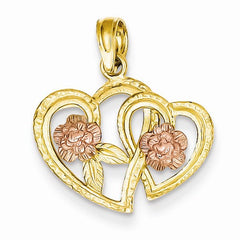 14k Gold Two-tone Double Hearts with Flowers Pendant