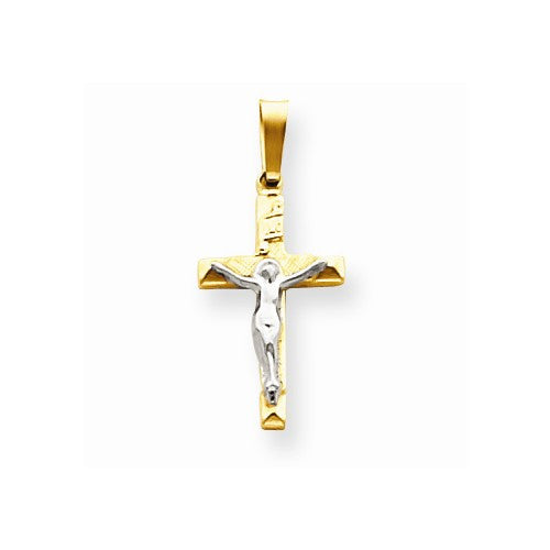 14k Gold Two-tone INRI Hollow Crucifix Pendant, Charm