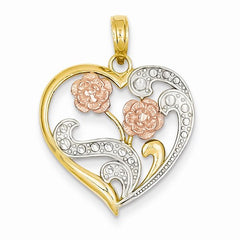 14k Gold Two-tone & Rhodium Flowers on Cut-out Heart Pendant, Pendants for Necklace