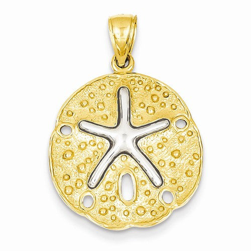 14k Gold Two Tone Sand Dollar w/ Starfish Pendant, Pendants for Necklace