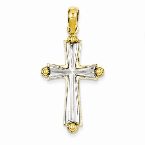 14k Gold Two-tone Solid Fashion Cross Pendant