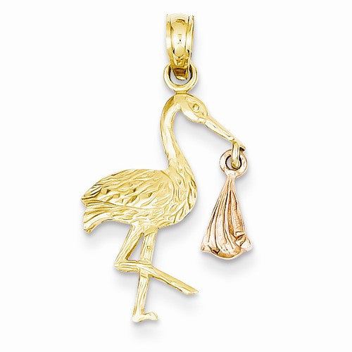 14k Gold Two-tone Stork Pendant, Pendants for Necklace