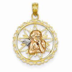 14k Gold Two-tone w/Rhodium Angel Resting on Elbow Pendant