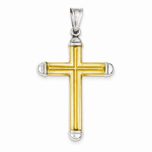 14k Gold Two-tone w/Rhodium Hollow Cross Pendant, Pendants for Necklace