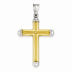 14k Gold Two-tone w/Rhodium Hollow Cross Pendant