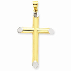 14k Gold w/Rhodium 3-D Hollow Cross pendant