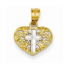 14k Gold w/Rhodium Cross in Heart Pendant, Pendants for Necklace
