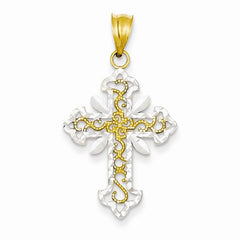 14k Gold w/Rhodium Diamond-cut Cross pendant, Alluring Pendants for Necklace
