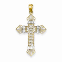 14k Gold w/Rhodium Diamond-cut Cross Pendant, Pretty Pendants for Necklace