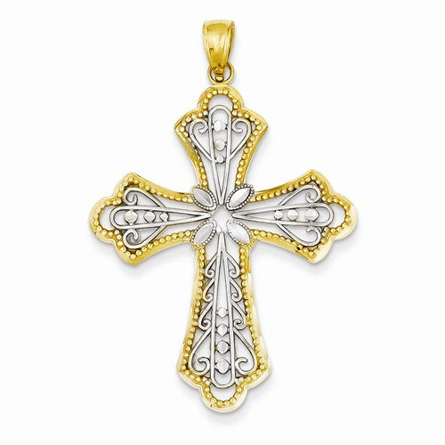 14k Gold w/Rhodium Diamond-cut Filigree Cut-out Cross Pendant, Pendants for Necklace