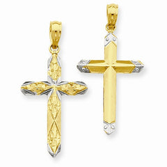 14k Gold w/Rhodium Diamond-cut Reversible Cross pendant, Charm
