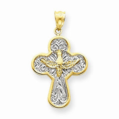14k Gold w/Rhodium Dove Cross Pendant, Pendants for Necklace