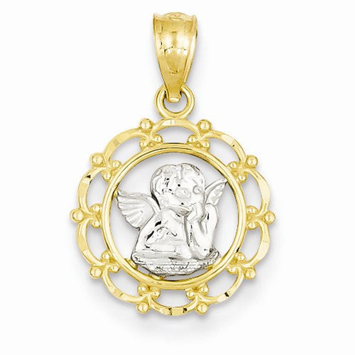 14k Gold w/Rhodium Framed Cherub Pendant