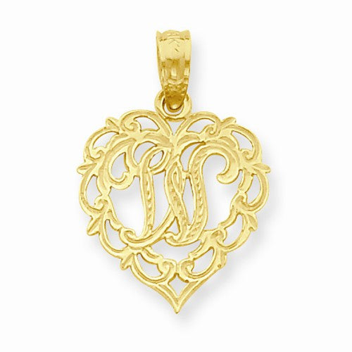 14k Gold W Script Initial in Heart Pendant, Pendants for Necklace