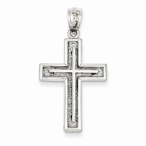 14k Gold White Cross on Square Edged Frame Pendant, Pendants for Necklace