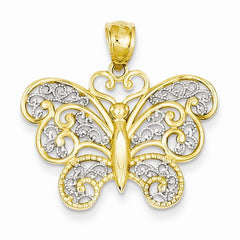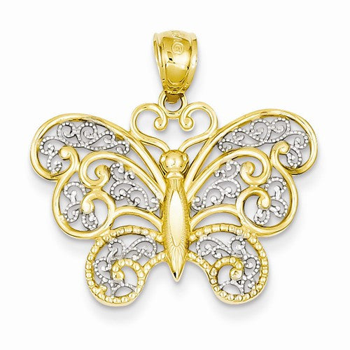 14k Gold with Rhodium Filigree Butterfly Pendant