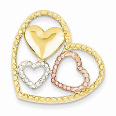14k Gold Yellow, Rose and Rhodium Heart Pendant
