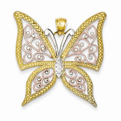 14k Gold Yellow & Rose Gold w/Rhodium Diamond-cut Butterfly Pendant