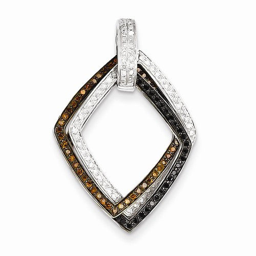 14k Two-tone Gold Black/White/Brown Diamond Moveable Pendant, Quality AA (G-H Color, SI1-SI2 Clarity)