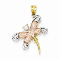 14k Two-tone Gold Rhodium Plated D/C Dragonfly Pendant