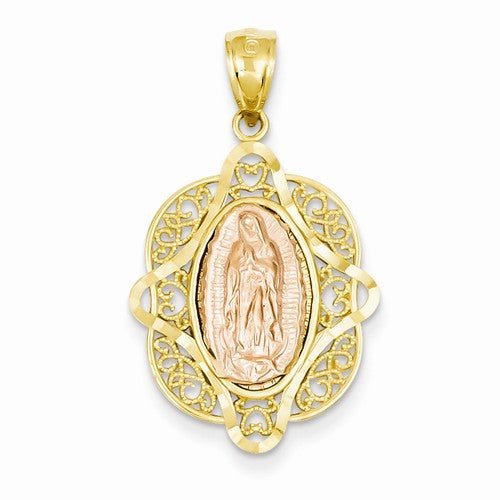 14k Two-tone Rose Gold and Yellow Gold Virgin Mary Pendant