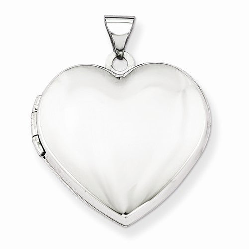 14k White Gold 21mm Heart Plain Domed Family Locket