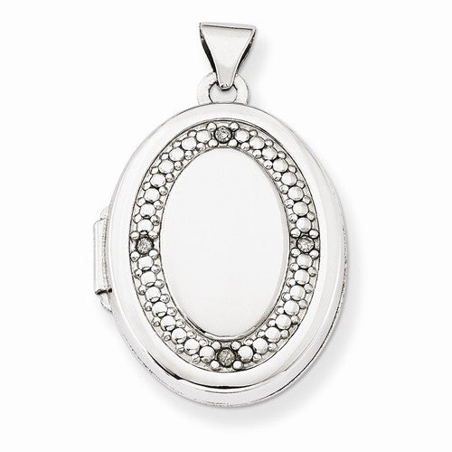 14k White Gold 21mm Oval Diamond with Texture Locket