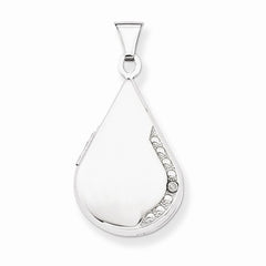 14k White Gold 21mm Tear Drop Diamond Set Locket