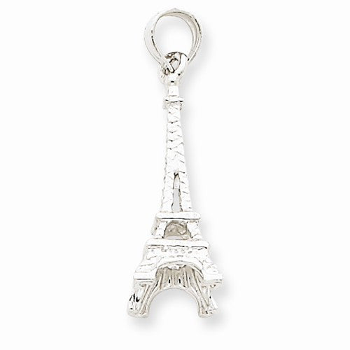 14k White Gold 3-D Eiffel Tower Pendant, Pendants for Necklace