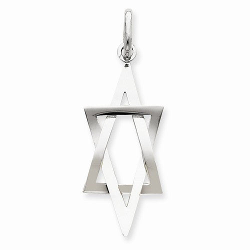 14k White Gold 3-D Elongated Star of David Pendant
