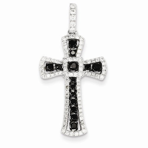 14k White Gold Black and White Diamond Cross pendant, Quality AA (G-H Color, SI1-SI2 Clarity, 0.83 cttw), Classy Pendants for Necklace