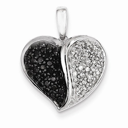 14k White Gold Black & White Diamonds Heart Pendant, Quality AA (G-H Color, SI1-SI2 Clarity)
