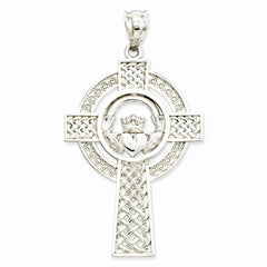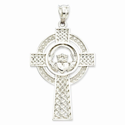 14k White Gold Celtic Claddagh Cross Pendant, Pendants for Necklace