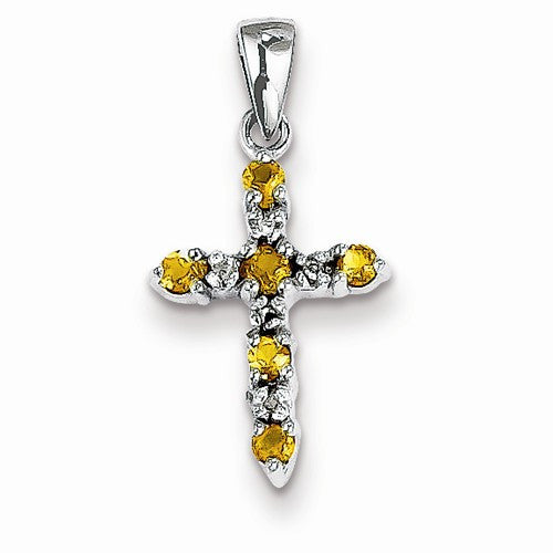 14k White Gold Citrine & Diamond Cross Pendant, Quality A (G-I Color, SI2 Clarity)